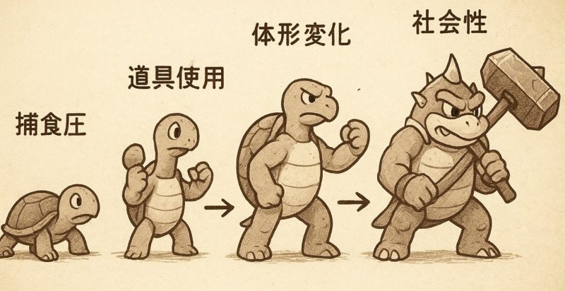 というわけで、カメ族に現実の生物進化がはたらいたと仮定していっしょにみていきましょう!